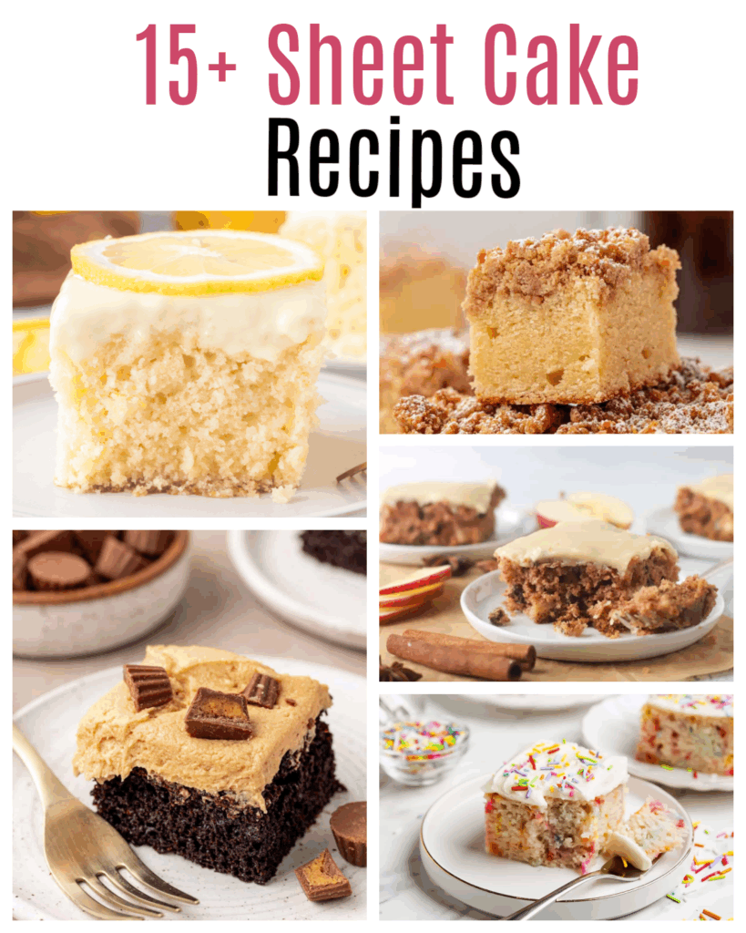 A few of my personal favorites from this list include my carrot sheet cake, which is perfectly spiced and topped with a rich cream cheese frosting, my funfetti sheet cake, which is soft, buttery, and always a hit for celebrations, and my Mississippi mud cake, which is rich, chocolatey, and topped with gooey marshmallows and frosting. These are the recipes I find myself coming back to again and again.