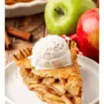 Once the pie is baked it’s time to serve up a slice of pie and enjoy! I love serving it with a scoop of vanilla ice cream. You can also serve with a scoop of homemade whipped cream.
