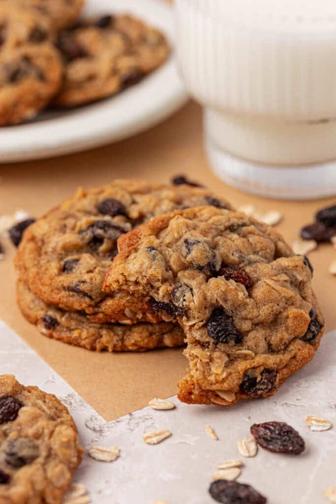 These oatmeal raisin cookies are big, soft, and perfectly chewy on the inside. Basically everything you crave in an oatmeal raisin cookie.