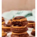 - Once cookies are cooled top each cookie with about 1 ½ – 2 teaspoons of peanut butter filling. I scoop and then slightly flatten each scoop.