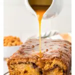 Once all of the batter is in the loaf pan, I sprinkled on more cinnamon sugar so you get a crunchy topping once it’s baked. After one bite, as delicious as it was I knew a butterscotch glaze would send it over the edge.