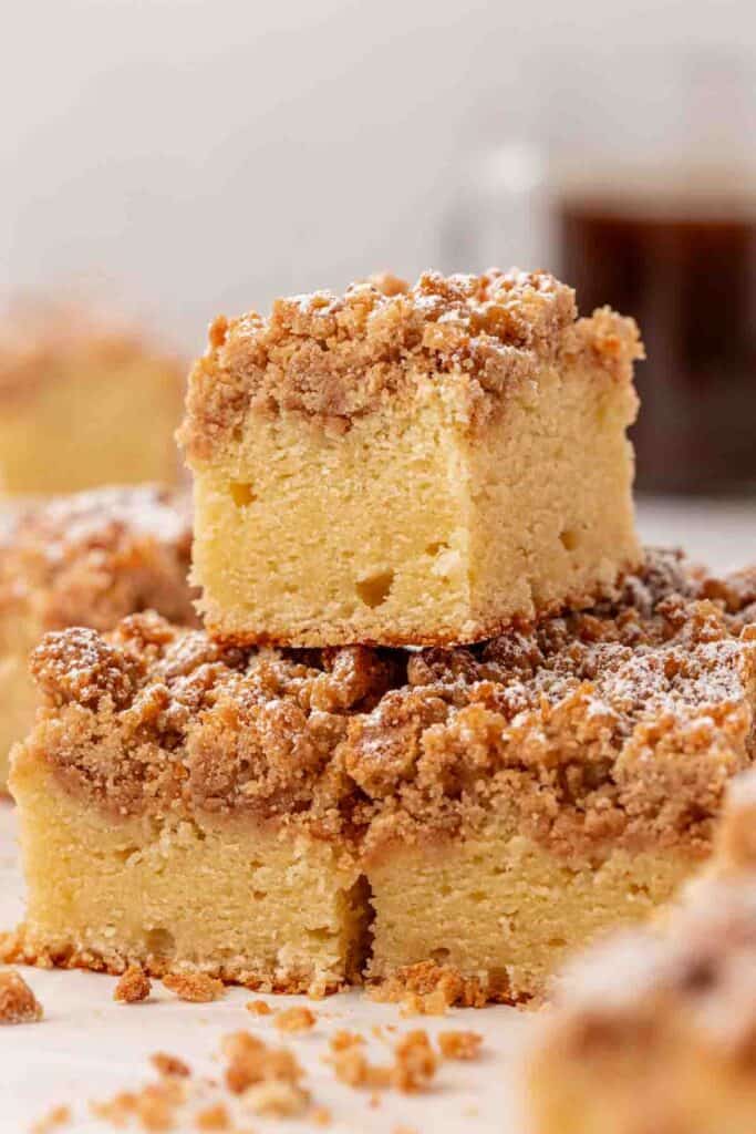 The result is a classic crumb cake with big, soft crumbs on top and a tender vanilla cake underneath—exactly the balance I was aiming for.