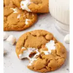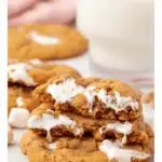 The cookie dough base comes from this Ultimate Cookie Handbook (which is a game changer of a book – I highly recommend!) is loaded with peanut butter chips for extra flavor, and just like the best chewy cookies, a little bit of cornstarch keeps the texture perfectly soft in the center. The chill time is key—it helps the cookie dough ball hold its shape in the oven and keeps the marshmallow from oozing too much.