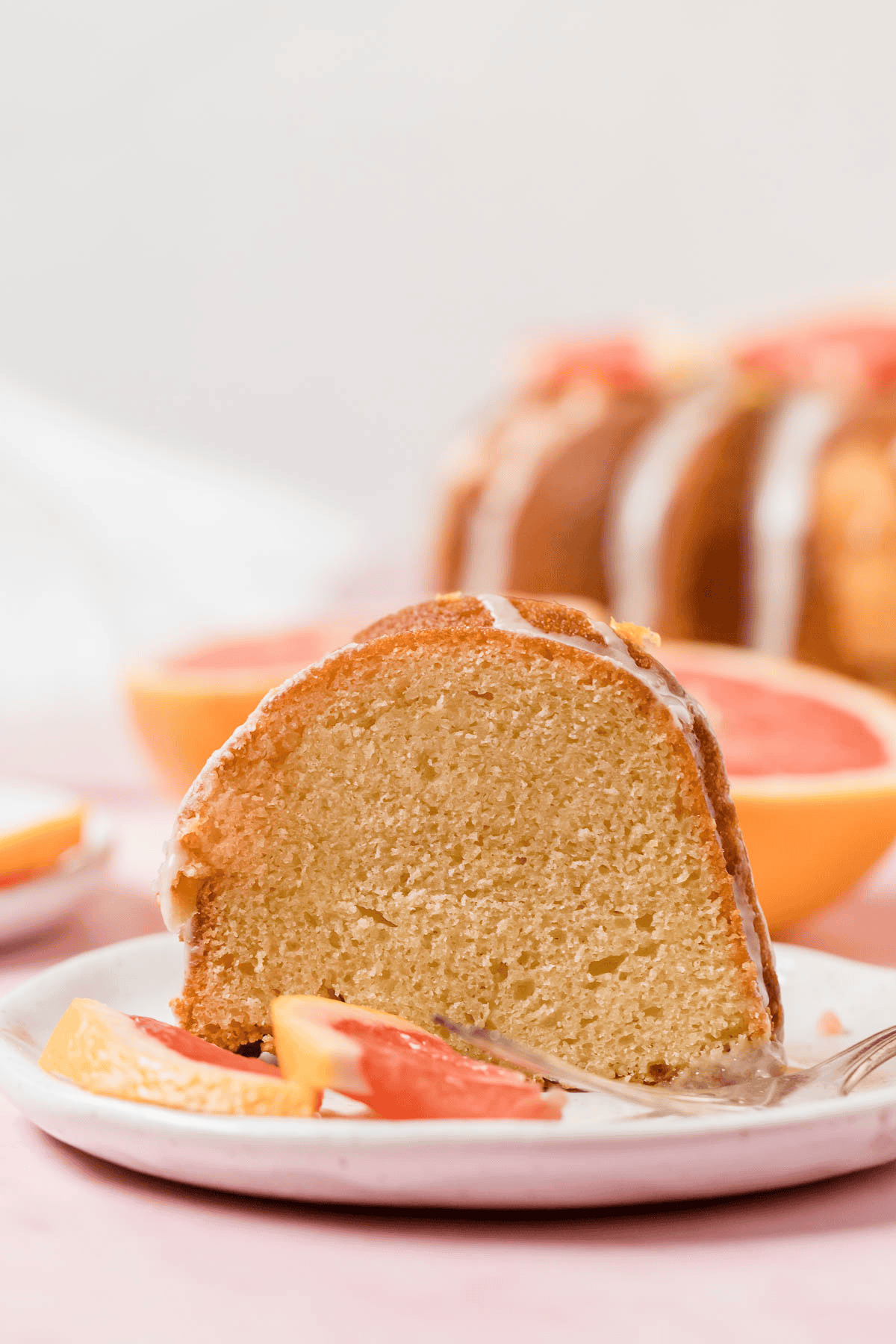 I’ve made this ruby red grapefruit pound cake a few times now and have updated it to now include stirring in some fresh squeezed grapefruit juice into the batter as well as the powdered sugar glaze. I find the added grapefruit juice into the pound cake batter really ups the grapefruit flavor!
