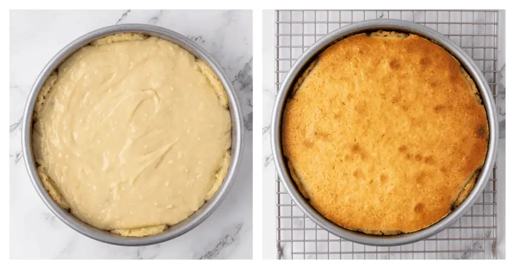 - Prep oven and prepare pan. Position a rack in the center of your oven and preheat oven to 350°F (180°C). Spray 9-inch (23 cm) cake pan with non-stick cooking spray. You can also line the bottom of the cake pan with parchment which will help with any sticking issues.