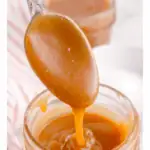 You can use this caramel sauce in so many ways! Try drizzling it over a slice of my vanilla cheesecake recipe. Or a scoop of vanilla ice cream. Or dip some fresh fruit, like sliced apples in it for a fun snack!