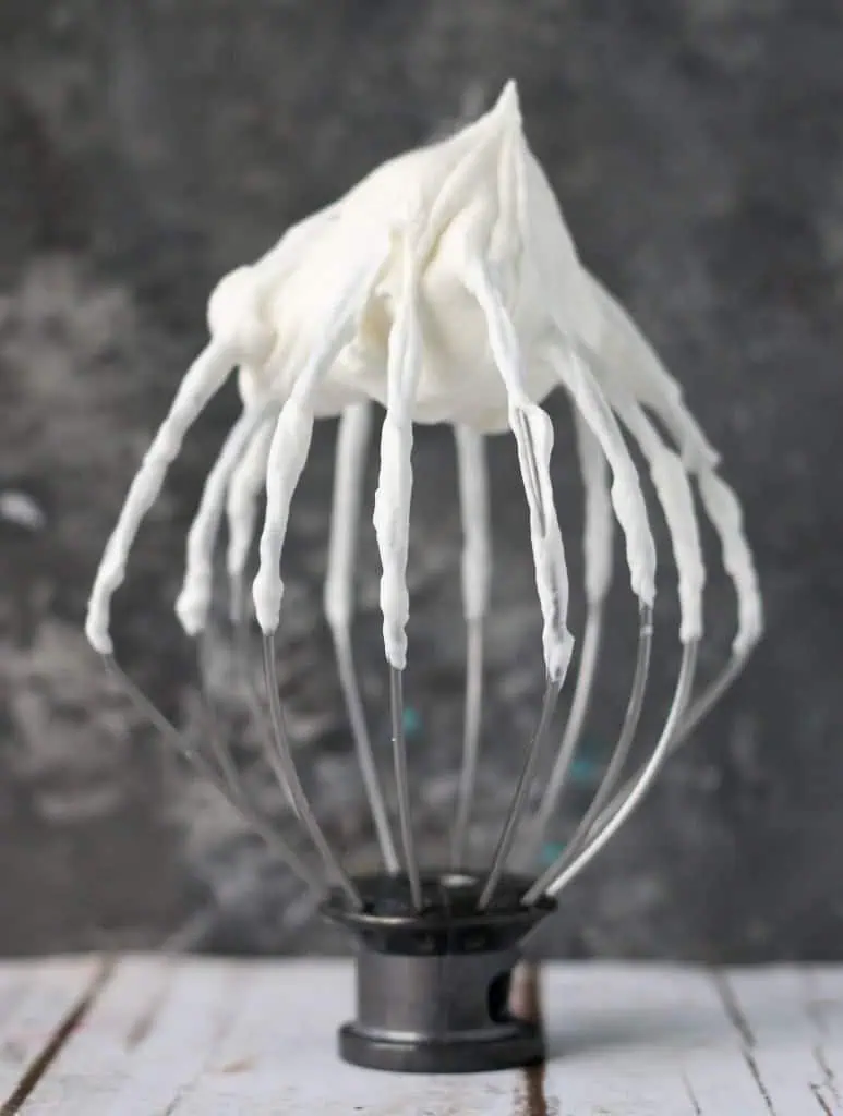 So refrain from picking up that blue tub of you know what stuff in the freezer section or a can of whipped cream spray. Walk away. This stabilized whipped cream will keep its shape for a day as long as the dessert stays chilled as well!