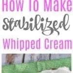 Learn how to make stabilized whipped cream in this easy step by step tutorial! With a secret ingredient your whipped cream will stand up and not go all weepy on you. You can make it ahead of time, and save yourself from going all weepy as well!