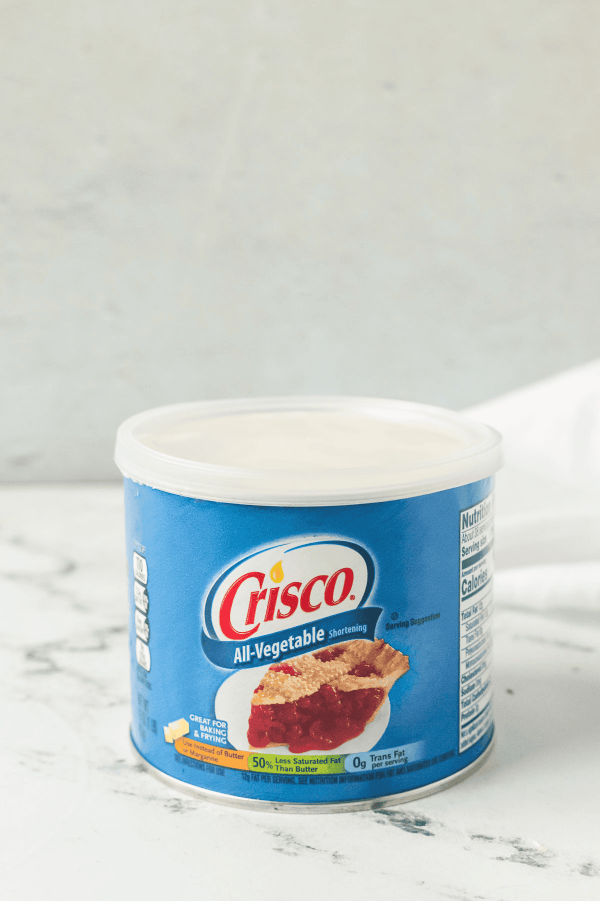 Shortening, or vegetable shortening, is an alternative to butter in your baking made from hydrogenated vegetable oil. It’s 100% fat, which means it has zero water in it, unlike butter, which has about 20% water. The most common brand you might known shortening as is Crisco.