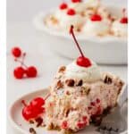 - Top with remaining whipped cream before serving. Garnish with additional cherries and pecans. Cut and serve