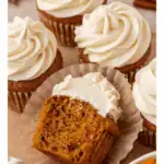 You will find that these pumpkin cupcakes vs. the pumpkin muffins result in a more tender, lighter baked good – exactly what you would want in a cupcake!