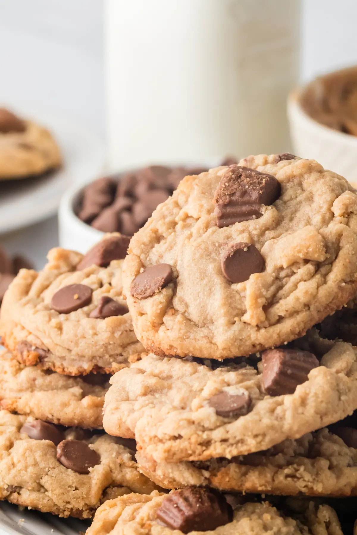 Calling all peanut butter lovers and cookie connoisseurs with these peanut butter cup chocolate chip cookies! These soft, chewy Reese’s peanut butter cup cookies are where dreams of peanut butter cookie dough and chocolate collide in the most magical way possible. These peanut butter chocolate chip cookies with peanut butter cups are ready in less than an hour and ready to be devoured.
