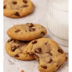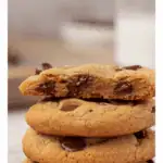 For that signature soft, chewy center with slightly crispy edges, you can’t bake the cookies too long. The centers should still look slightly soft when you take them out of the oven. They will continue cooking slightly on the cookie sheet.