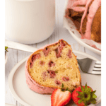 One of my favorite flavors in a cake! Love the strawberry glaze icing. I can’t help but have two slices!