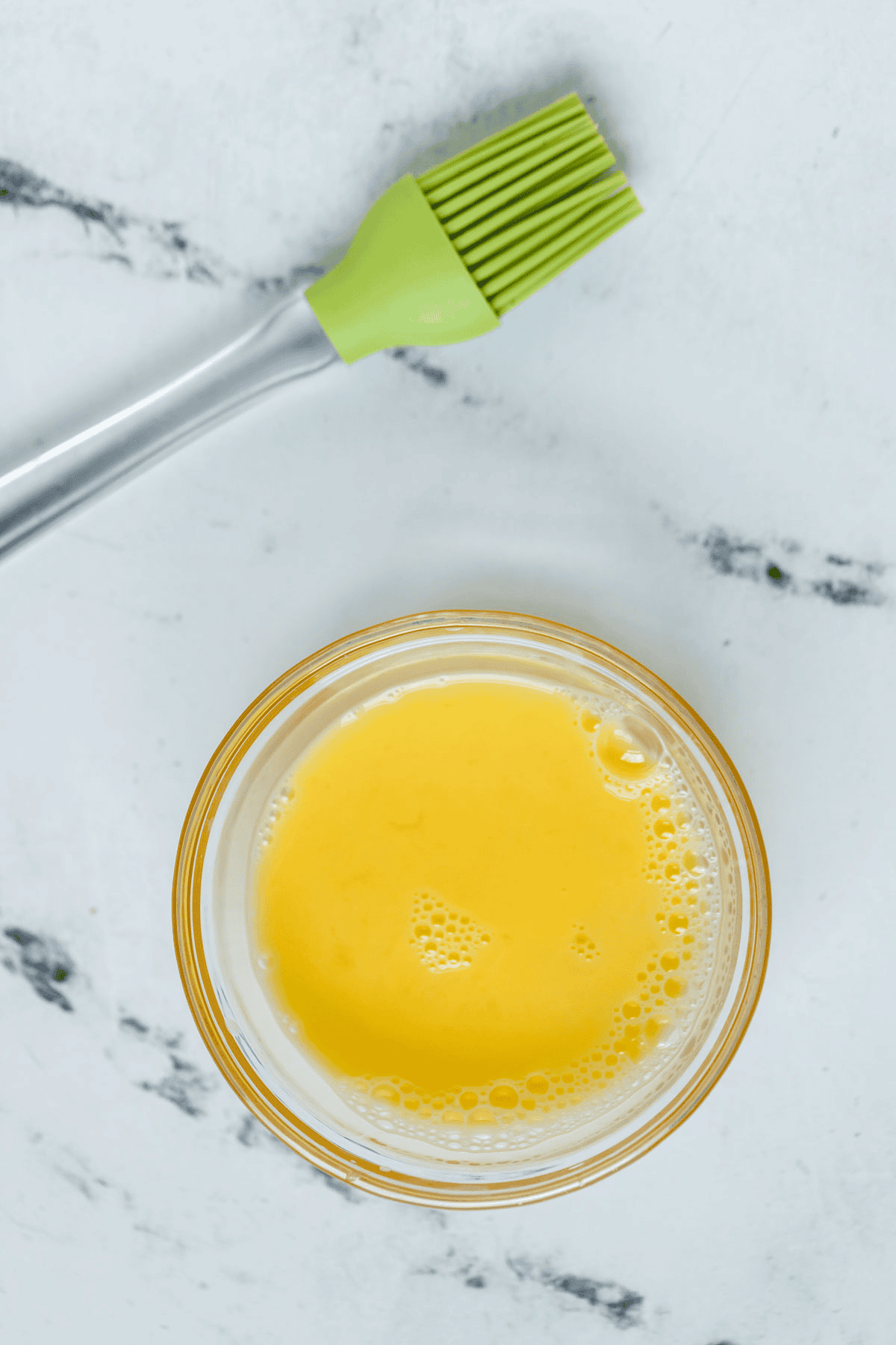 The egg and water mixture will serve as our egg wash pool. Then, simply brush the top of the pastry with the whole egg or egg yolk (or egg white) mixed with the liquid using a pastry brush. Make sure to lightly brush the pastry so you don’t end up with a thick film of egg – you want just a light coating.
