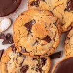 Reduce speed to low, add dry ingredients and mix until just combined, 5 to 10 seconds. Add the chopped chocolate and mix on low speed to incorporated. You can scoop the cookie dough at this point into balls or chill the cookie dough in the bowl. Press plastic wrap against dough and refrigerate for 24 hours, up to 72 hours. 1 ¼ pounds chopped chocolate